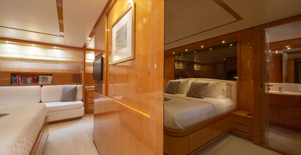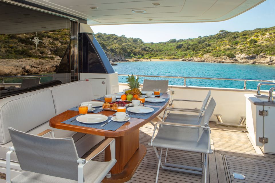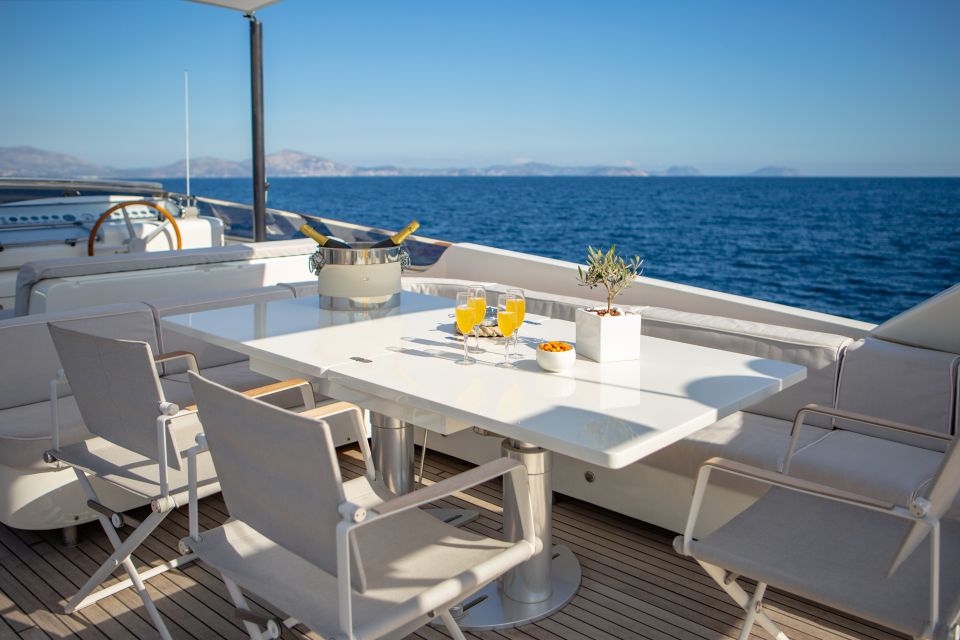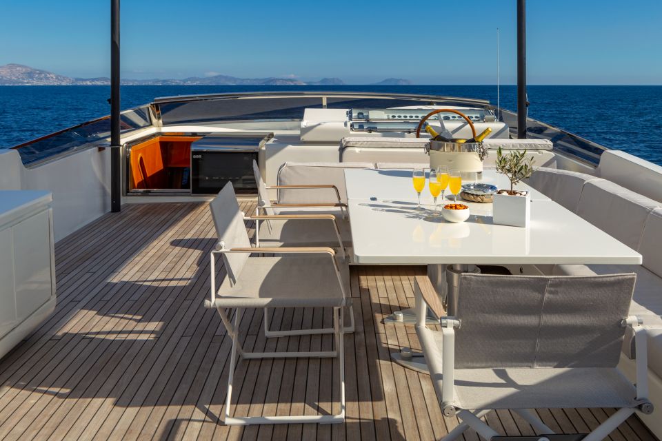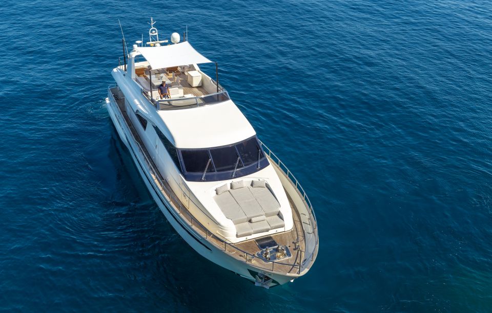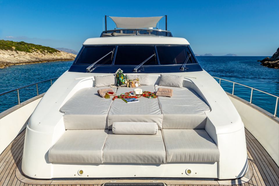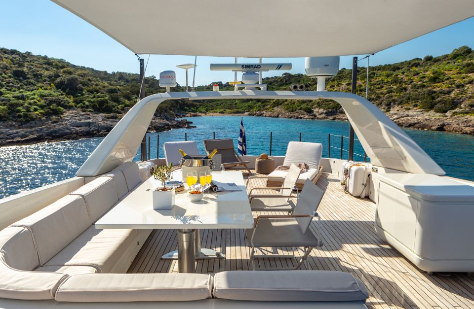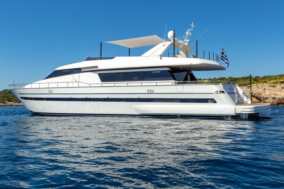 Experience a luxury crewed yacht charter in Greece onboard motor yacht 'The Bird'. Built by Sanlorenzo in 2004 ,this 25.6m motor yacht will make you feel the utmost freedom. She overwent a very comprehensive 2018 refit, with a recent addition of the swim platform and a modern shower on the platform. She features a new teak deck as well as a new layout on the fly bride. By her twin 1500hp MTU the luxury motor yacht Bird is capable of a comfortable cruising speed of 22 knots and a maximum of 26 knots.