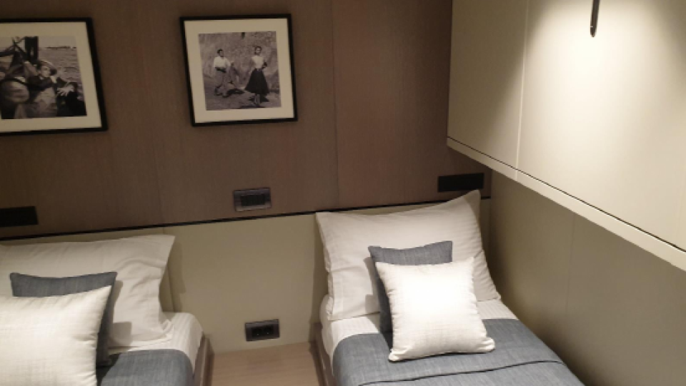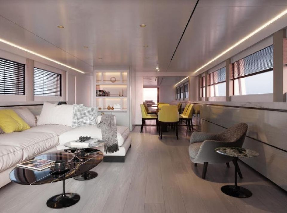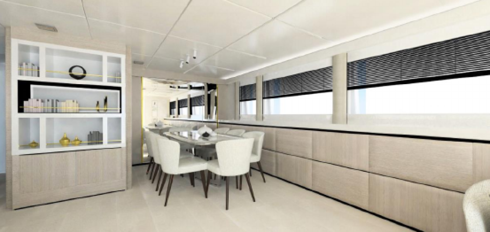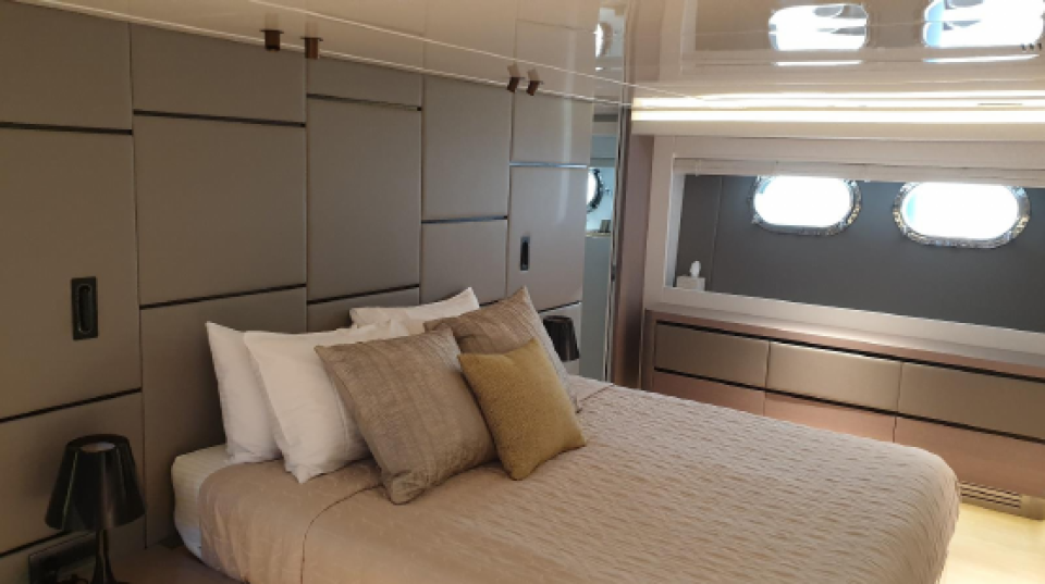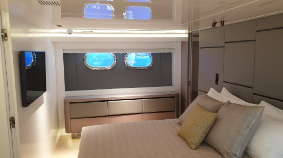 She was built by Admiral in 2008. With a beam of 6.5m and a draft of 2.2m, she has an aluminium hull and aluminium superstructure. She is powered by MTU engines giving her a maximum speed of 28 knots and a cruising speed of 23 knots. Maximum range is estimated at 900 nautical miles. The motor yacht can accommodate 9 guests in 4 cabins with an interior design by Luca Dini and an exterior design by Andrea Bacigalupo.